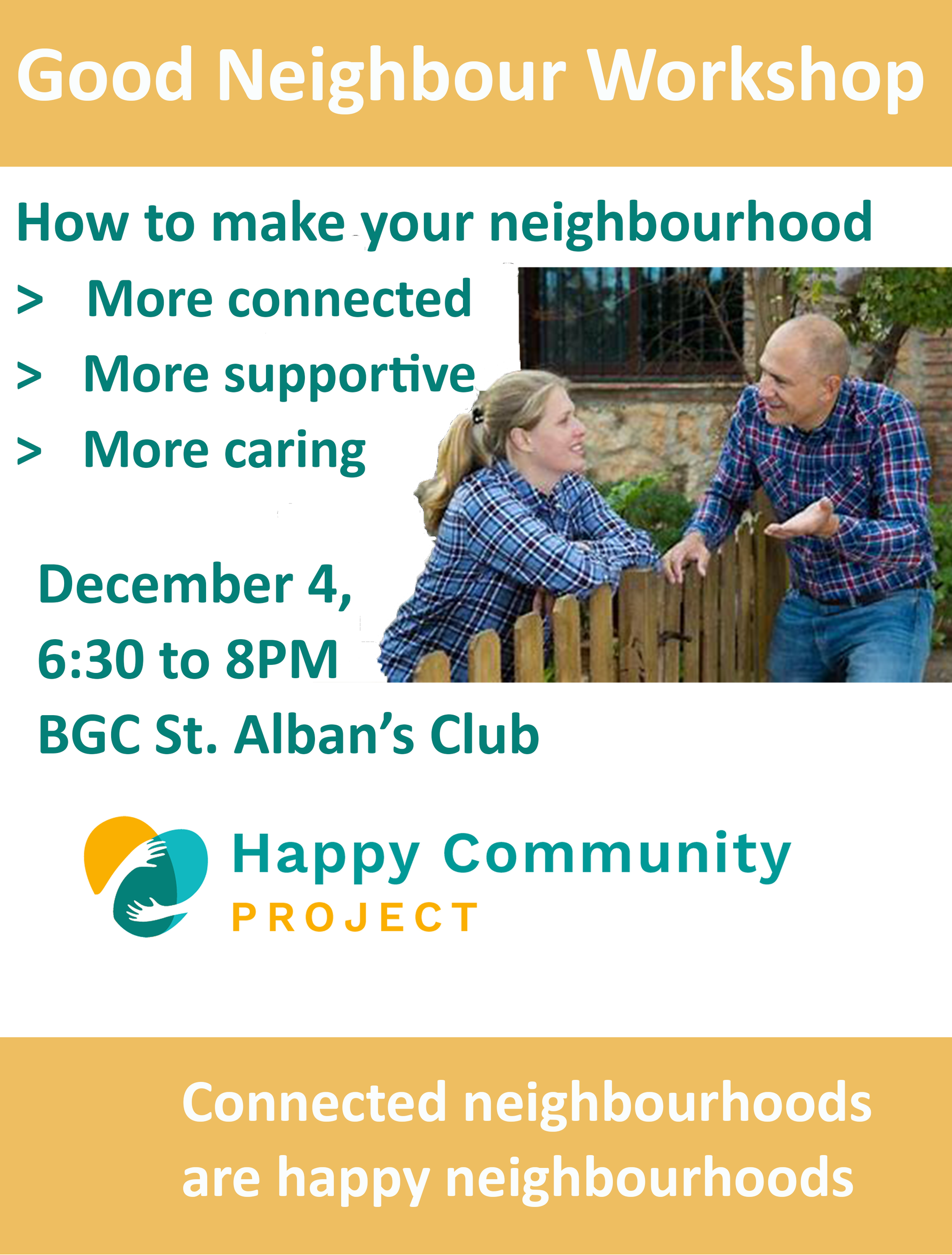 Don't miss this amazing opportunity to join Barry Braun in a FREE workshop on how to create a more socially connected, belonging, and caring neighbourhood. Barry will share a proven process that makes it simple, enjoyable, and secure to transform your neighbourhood into a happier, more fulfilling place to live.