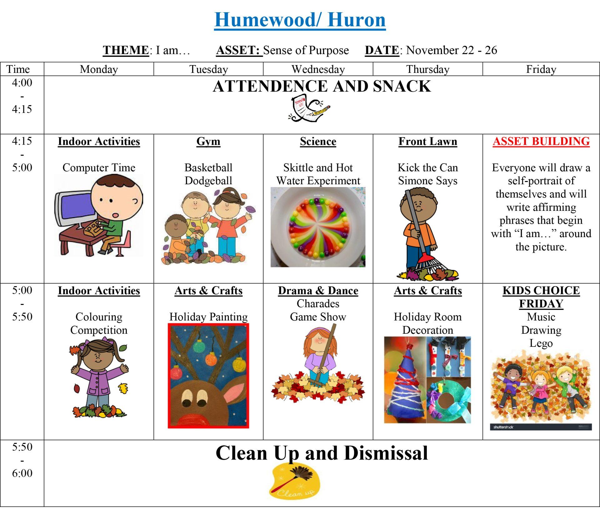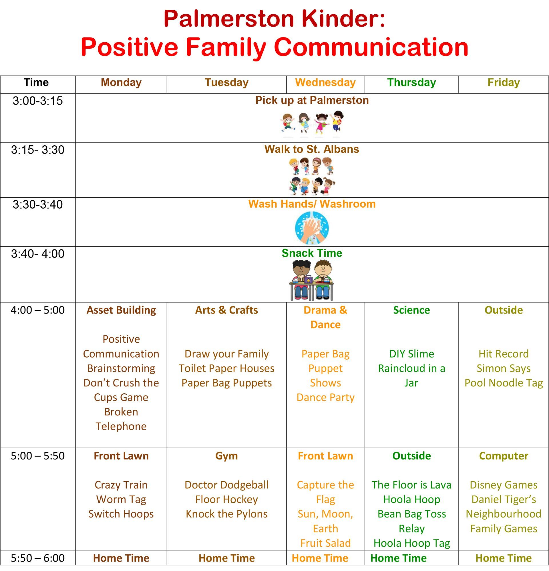 - Kinders, Juniors & Seniors: Hallway by door 4.